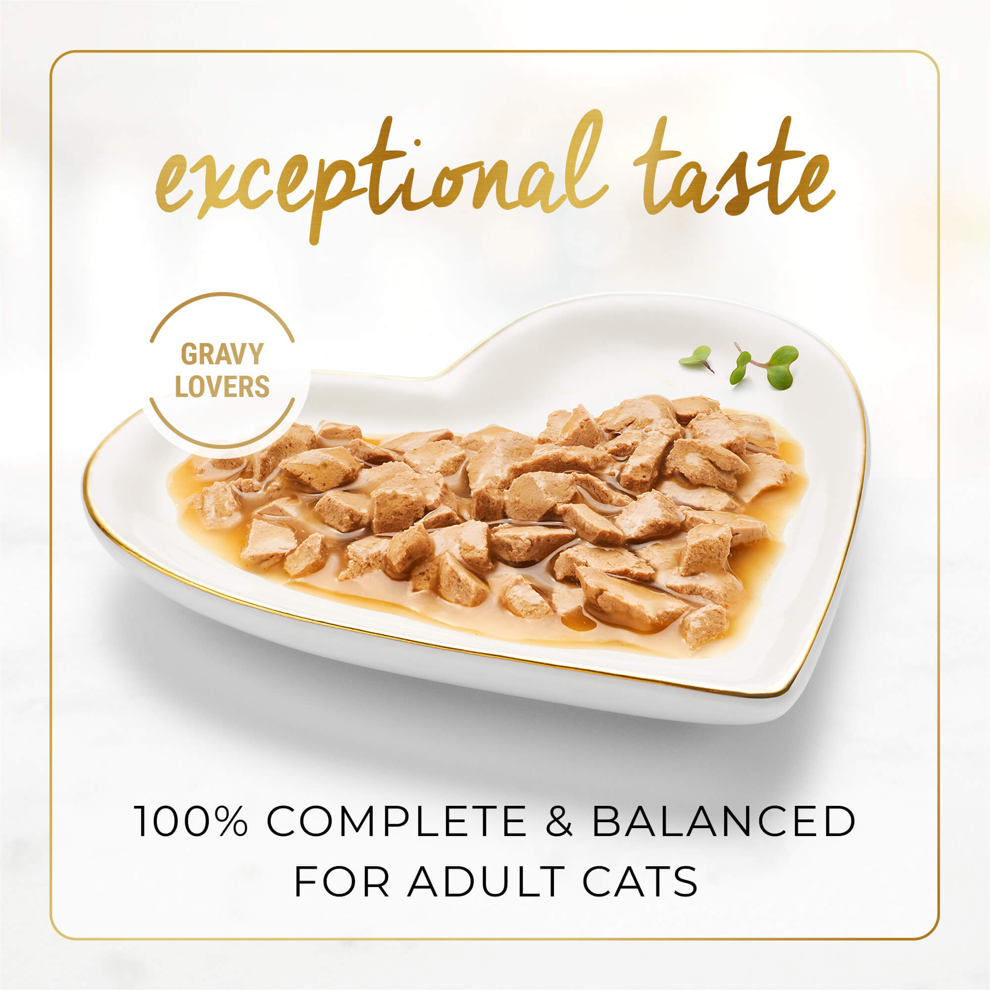 Fancy Feast Gravy Lovers range, crafted with small, delicate bites, slow-cooked and served in a thick flavour gravy.