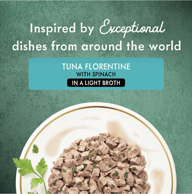 Give your cats the world with globally-inspired recipes. A delicious recipe inspired by Italian cuisine with high-quality tuna accented with spinach in a light broth.
