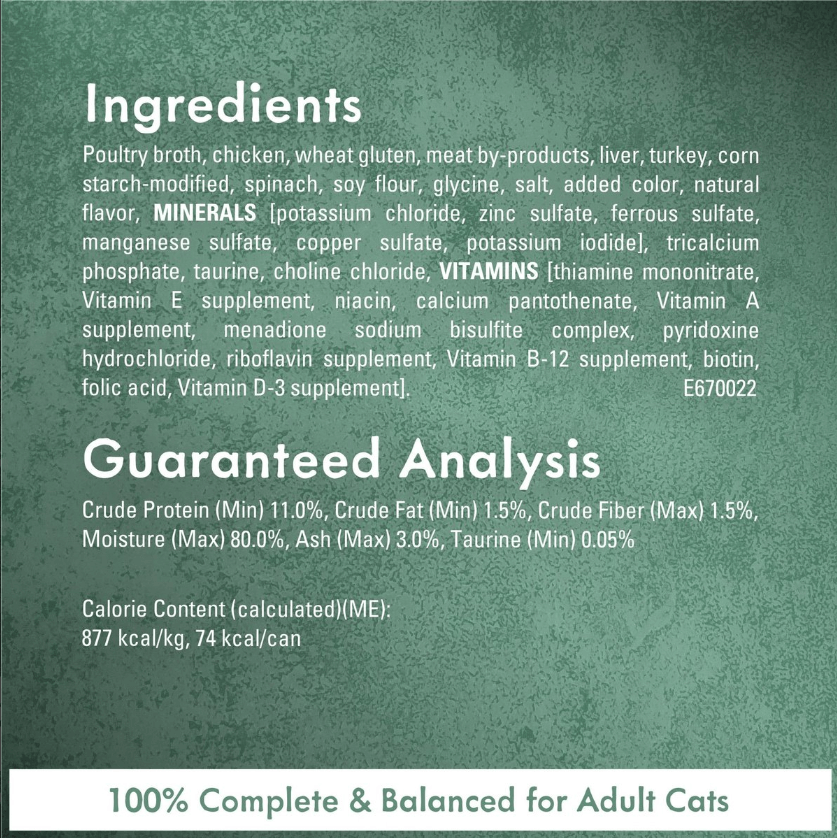 Give your cats the world with globally-inspired recipes. A delicious recipe inspired by Italian cuisine with white meat chicken accented with spinach in a light broth.