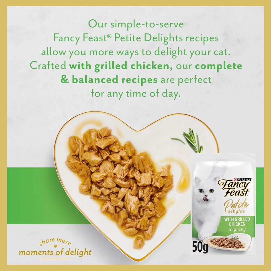 Fancy Feast Petite DelightsTM, a range of exquisite recipes served in delightfully smaller portions that allows you more ways to delight your cat any time of the day.