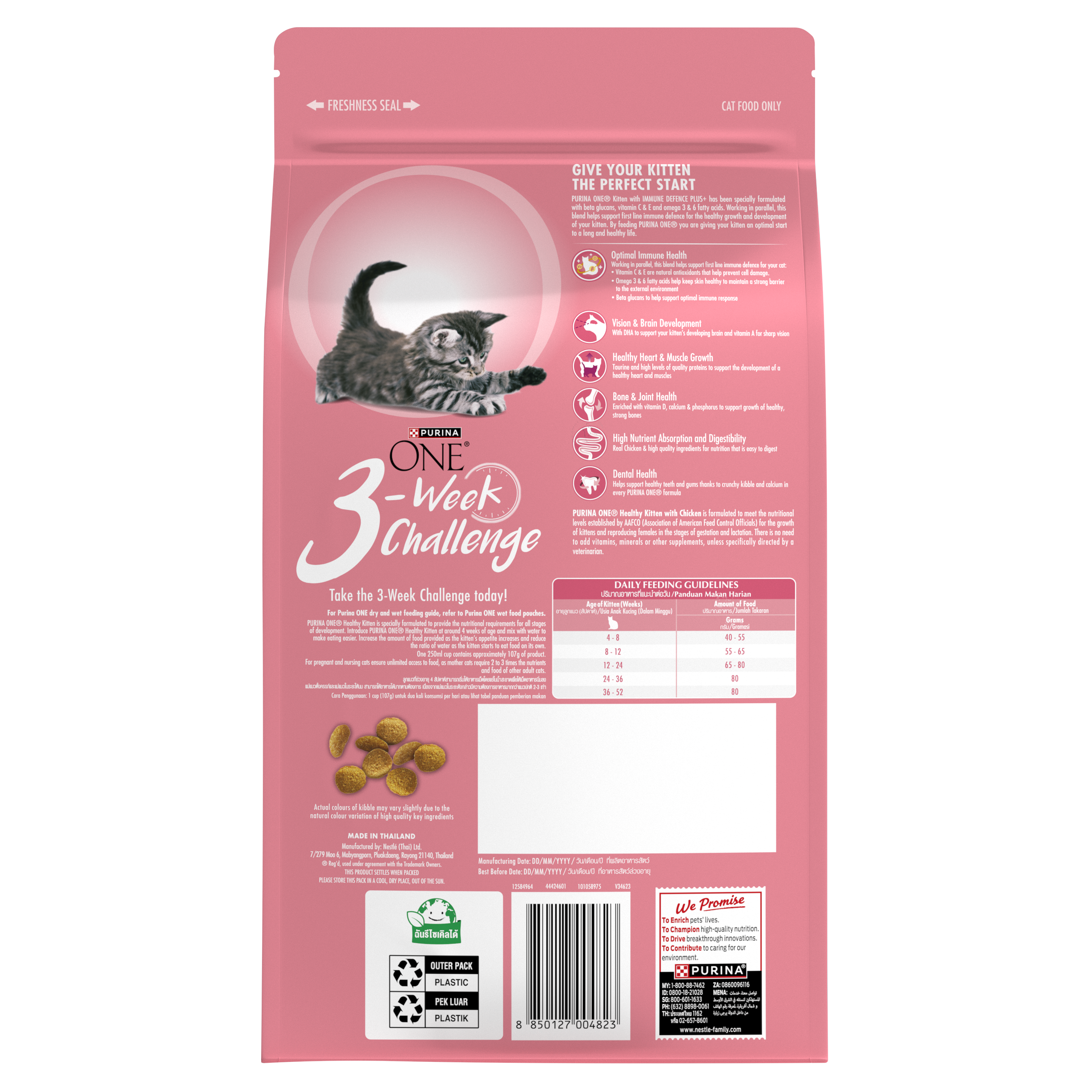 Developed by PURINA Vets and Nutritionists, Purina ONE® Healthy Kitten with Immune. Defence Plus+ is made with 100% complete and balanced nutrition, and real chicken as the #1 ingredient, because delicious taste combined with superior nutrition is at the heart of your kitten’s health and happiness. All our recipes are made with no added artificial colours, flavours and preservatives.