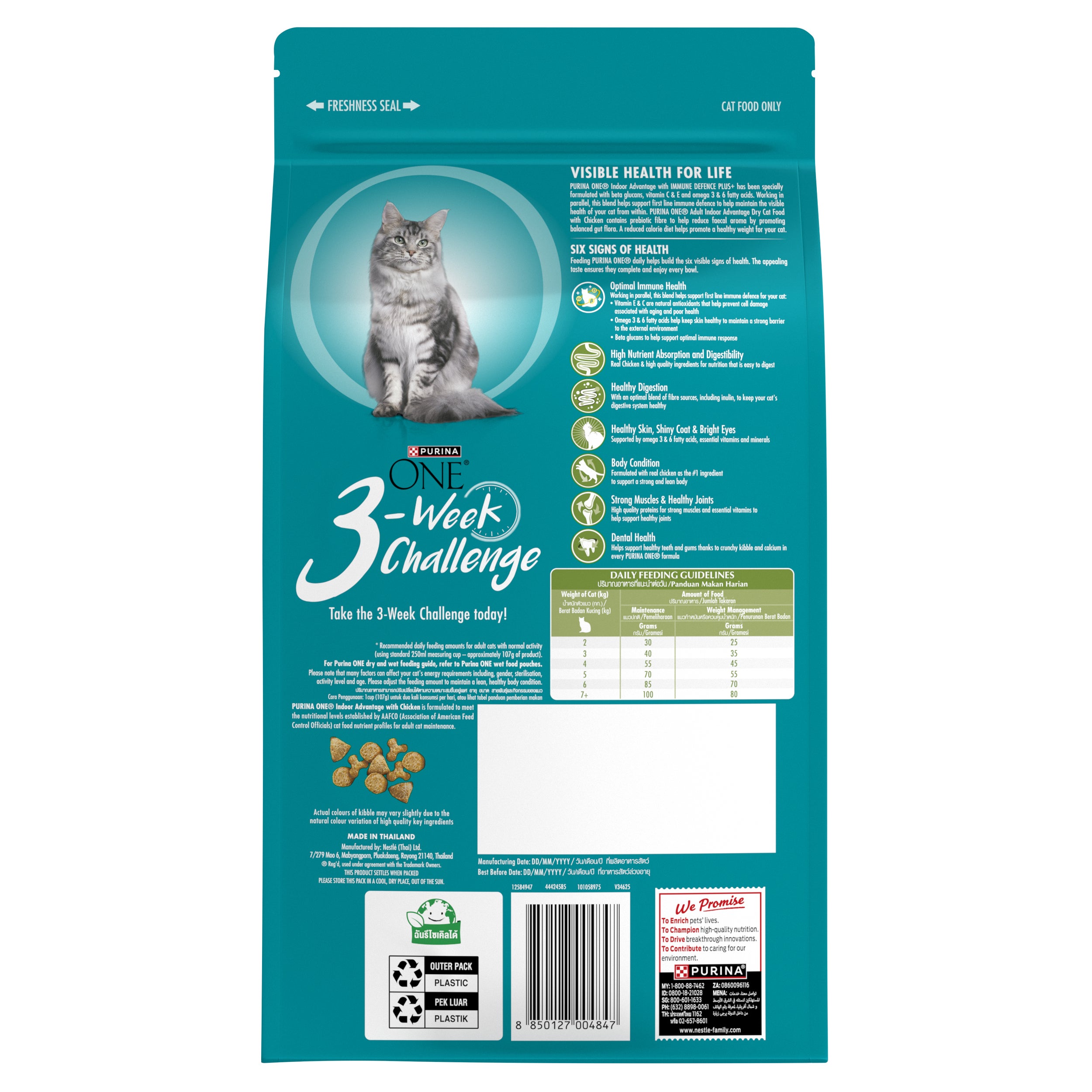 Developed by PURINA Vets and Nutritionists, Purina ONE® Indoor Advantage with Immune Defence Plus+ is made with 100% complete and balanced nutrition and contains all the key nutrients your cat needs to help support their lifelong health. This recipe is made with real chicken as the #1 ingredient, because delicious taste combined with superior nutrition is at the heart of your cat’s health and happiness.