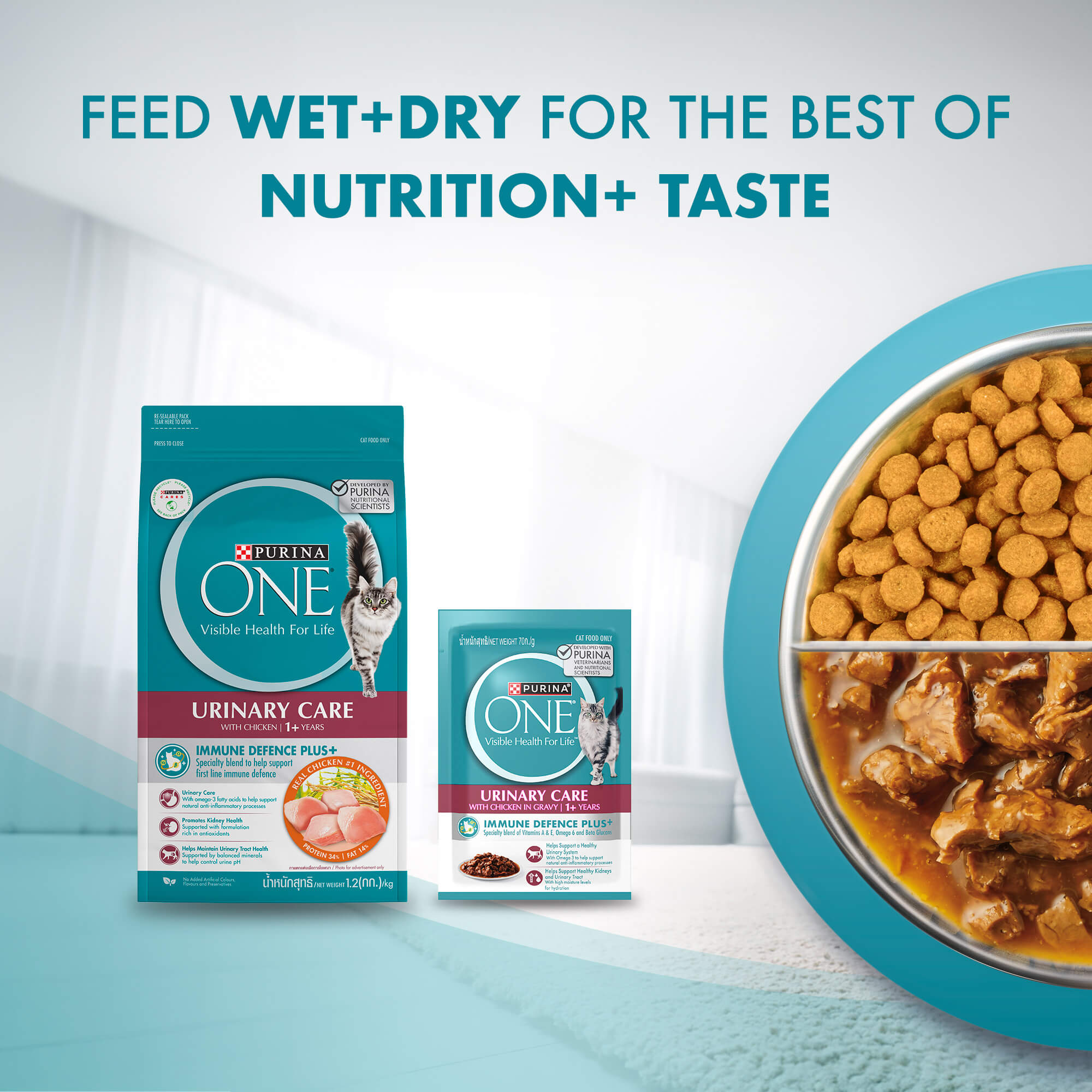 PURINA ONE® Wet Cat Urinary Care with Chicken has been specially formulated to help support cats’ kidney and urinary tract health.