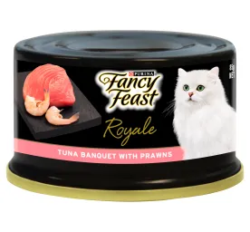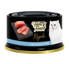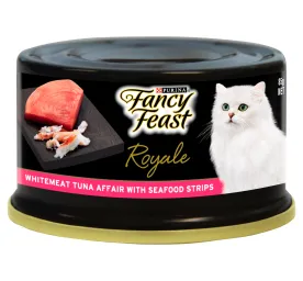 Real meat and seafood. Never any by-products or fillers. FANCY FEAST® Royale Whitemeat Tuna Affair With Seafood Strips is a highly palatable gourmet wet cat food made for adult cats. A sumptuous medley of tuna and seafood strips carefully prepared and served in a silky-smooth broth. FANCY FEAST® Royale recipes are intended for occasional and supplemental feeding only. Each recipe comes in an easy-to-open and easy-to-serve 85g can that makes mealtime simple and hassle-free. Serve alone or mix with dry food for a delectable texture, and a great way to add moisture to your cat’s diet. Crafted with high-quality ingredients, this recipe provides a rich source of protein and essential nutrients that help support your cat’s overall health and well-being. The tuna and seafood strips are rich in omega fatty acids, promoting a healthy, shiny coat and supporting cognitive function. The silky broth provides additional hydration, which is important for maintaining kidney and urinary health, especially in cats that may not drink enough water. The smooth, tender texture will appeal to even the most discerning cats, making it an ideal treat or supplement to their regular diet. Tender chunks of tuna served in a delicate brothHighly palatable gourmet wet cat foodMade with real, recognizable, high quality ingredientsContains no artificial colours, flavours or preservatives